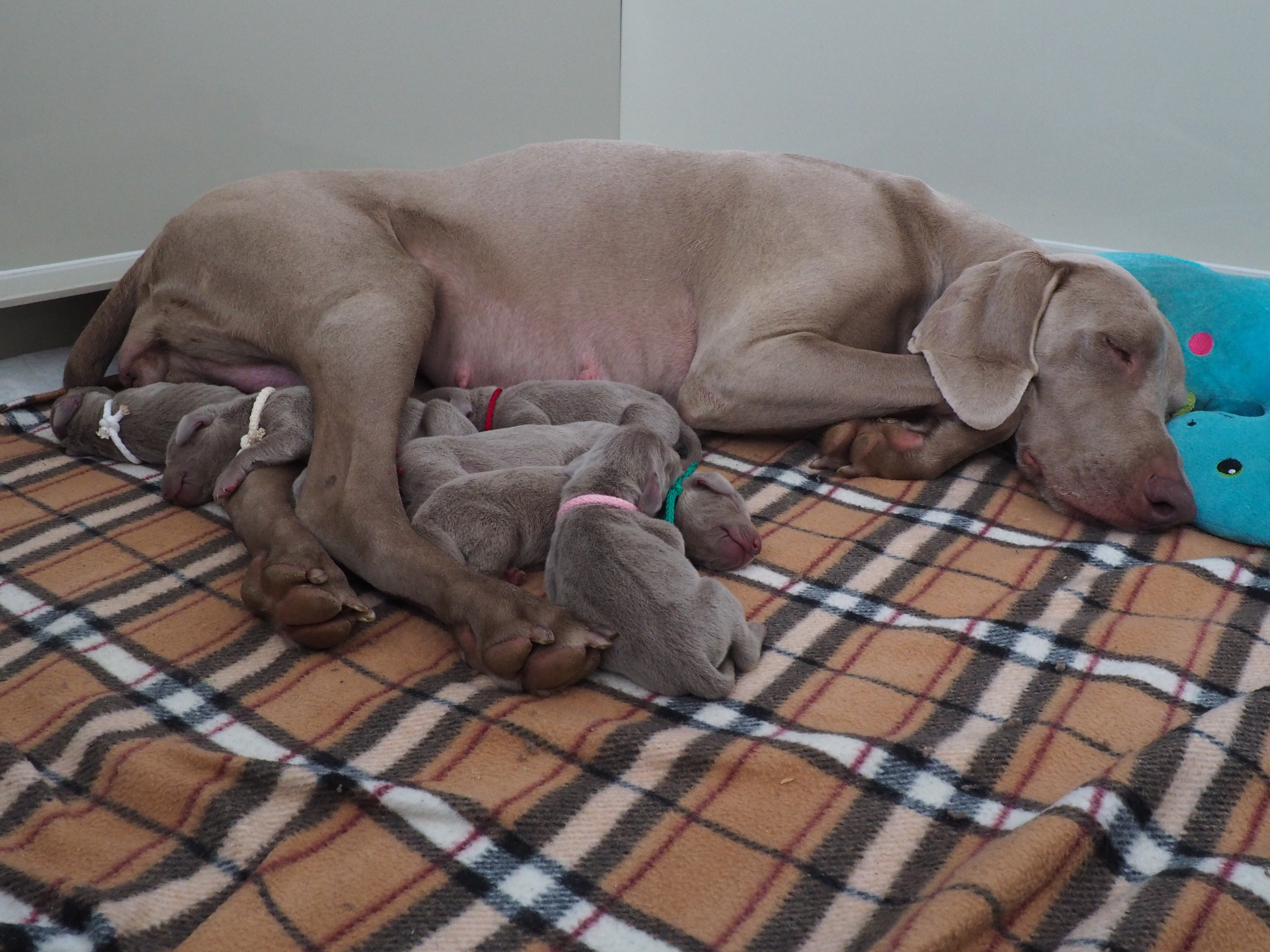 Máme ohromnou radost, že náš již netrpělivě očekávaný "A" vrh je na světě. Štěňátka se narodila v pondělí 29.4. 2019 v poměru 5 holčiček a 1 klučík. Porod nebyl úplně jednoduchý a trval celých 13,5 hodin. Vše jsme zvládli a myšky i trpělivá máma Ambra se mají čile k světu a prospívají. Z porodního boxu stále slyšíme spokojené mručení napapaných štěňátek :-)